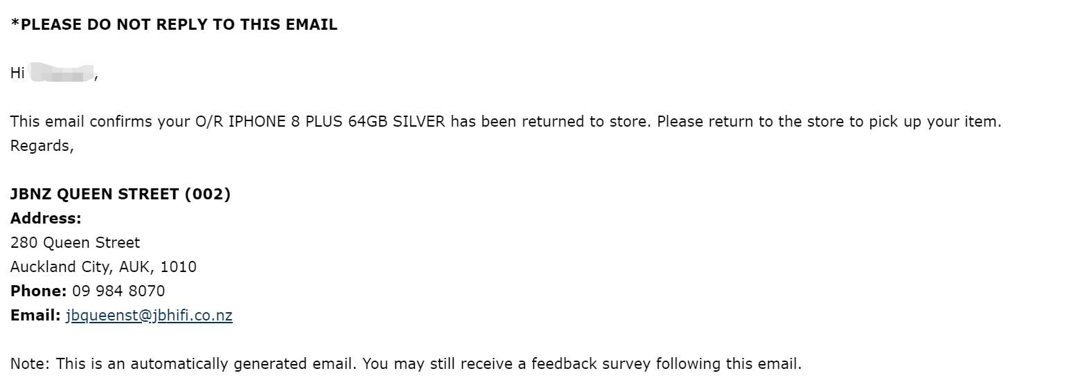 )还有一个需要注意的地方是留邮箱的时候不要留QQ邮箱,因为JBHIFI是屏蔽QQ邮箱域名的,所以你只能接收不能回复,一旦遇到问题无法回复邮件你就只能人肉去店里解决问题了。