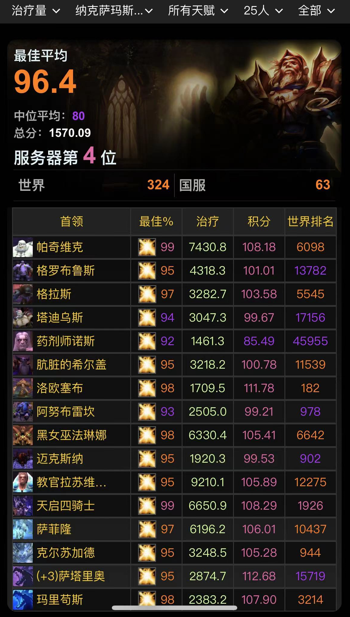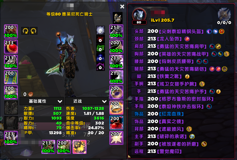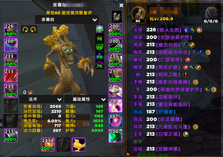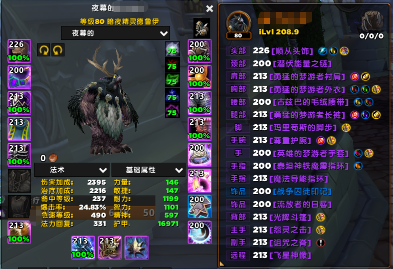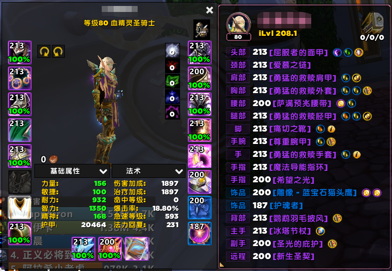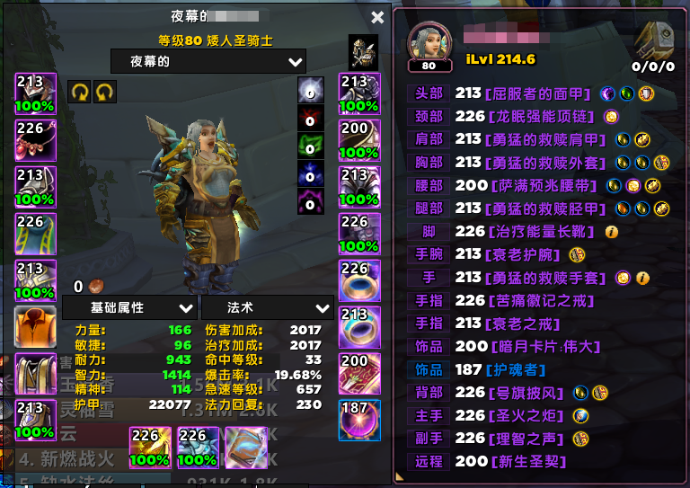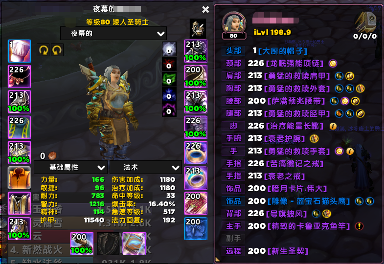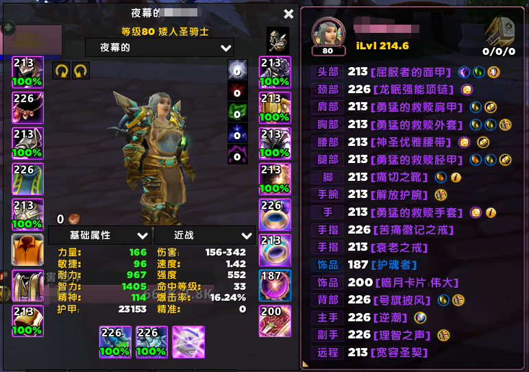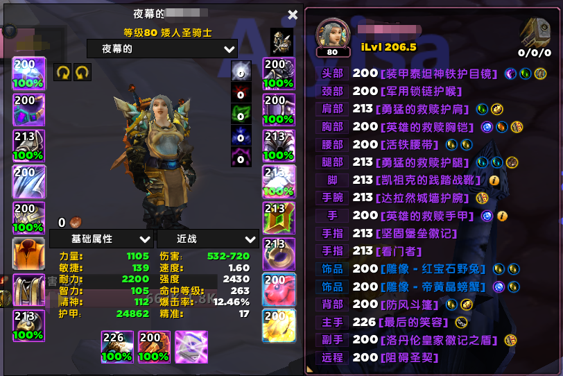 下面放一些我奶骑在P1阶段的装备的留念,也算是为自己半年的魔兽生涯画上一个完美的句号。